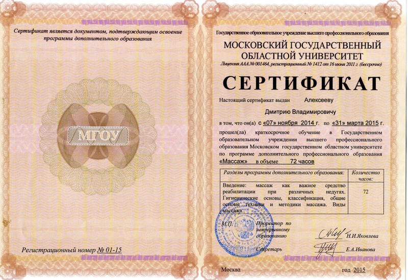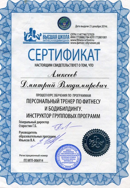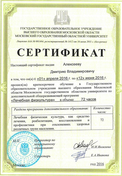 - Профильное: Высшая школа фитнеса и бодибилдинга г. Москва, курсы массажа, курсы ЛФК и реабилитации