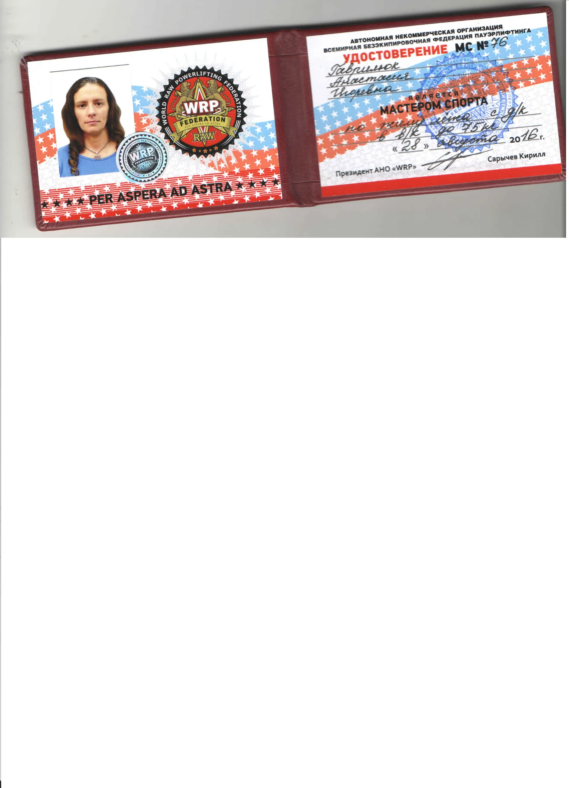 Мастер спорта по жиму лежа с д/к в в/к до 75 кг